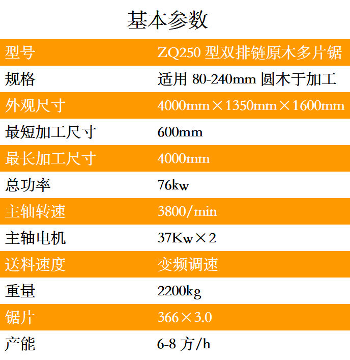 ZQ250型雙排鏈原木多片鋸是一種用于原木的開破以及分片的高性能專用機(jī)械
