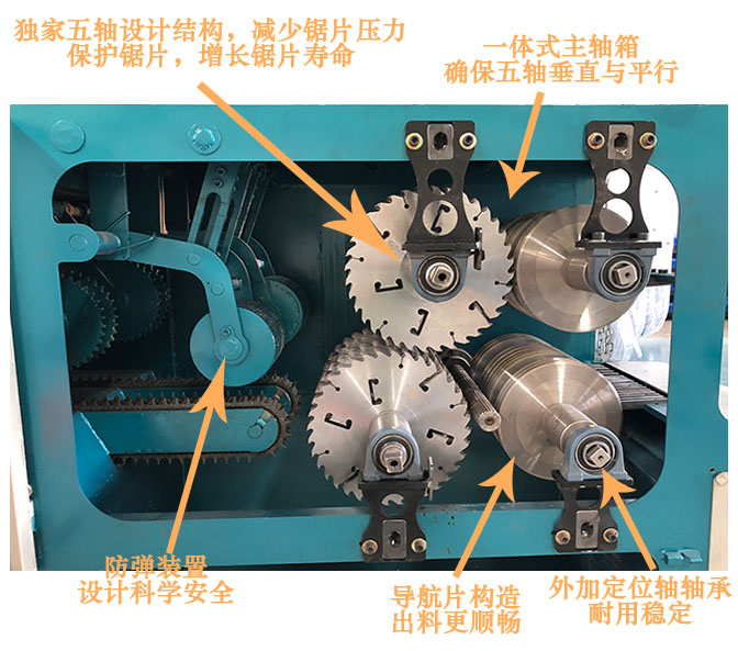 送 料:采用四排尖齒鏈條輸送,機(jī)上配有變頻智能調(diào)速器,可以對大小木料的進(jìn)料速度實(shí)行自由調(diào)速。原木可以實(shí)現(xiàn)自動分中,機(jī)上還配有限位開關(guān),防止超去規(guī)格木料進(jìn)入,防止卡木避免對機(jī)器造成損壞。